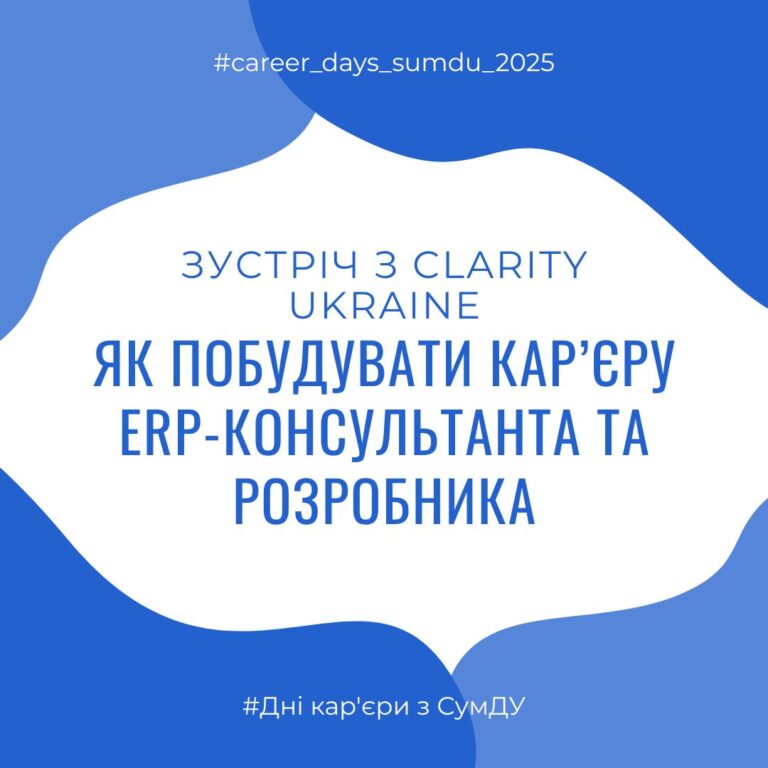 📅7 травня 2025 року в рамках Днів кар’єри СумДУ відбулася онлайн-зустріч студентів та викладачів кафедри економічної кібернетики Навчально-наукового інституту бізнесу, економіки та менеджменту з представниками ІТ-консалтингової компанії Clarity Ukraine. 💼