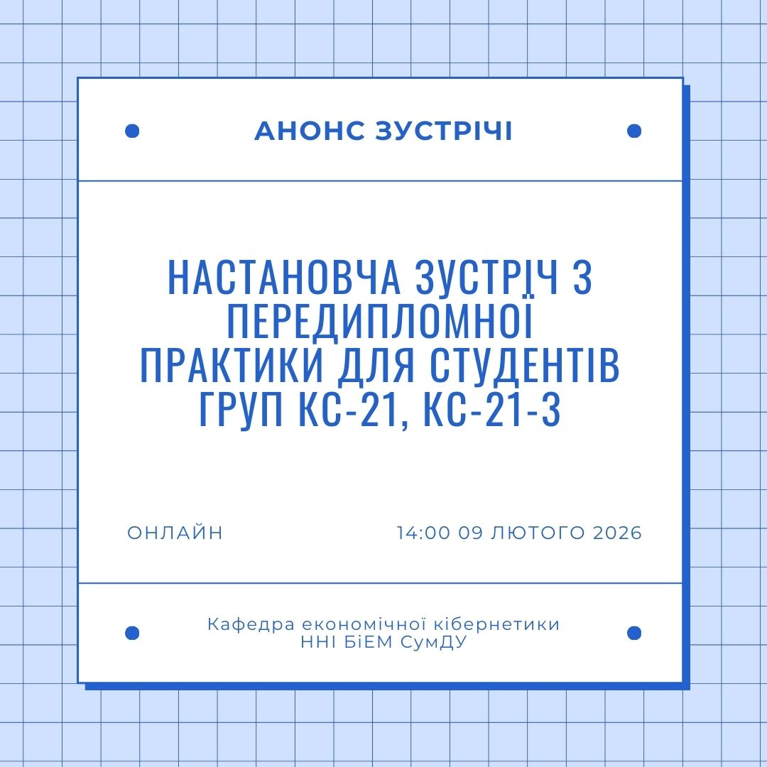 The Department of Economic Cybernetics invites 4th-year students of groups KS-21 and KS-21-3 to an online meeting dedicated to key issues of pre-diploma practice and preparation of bachelor’s qualification work.