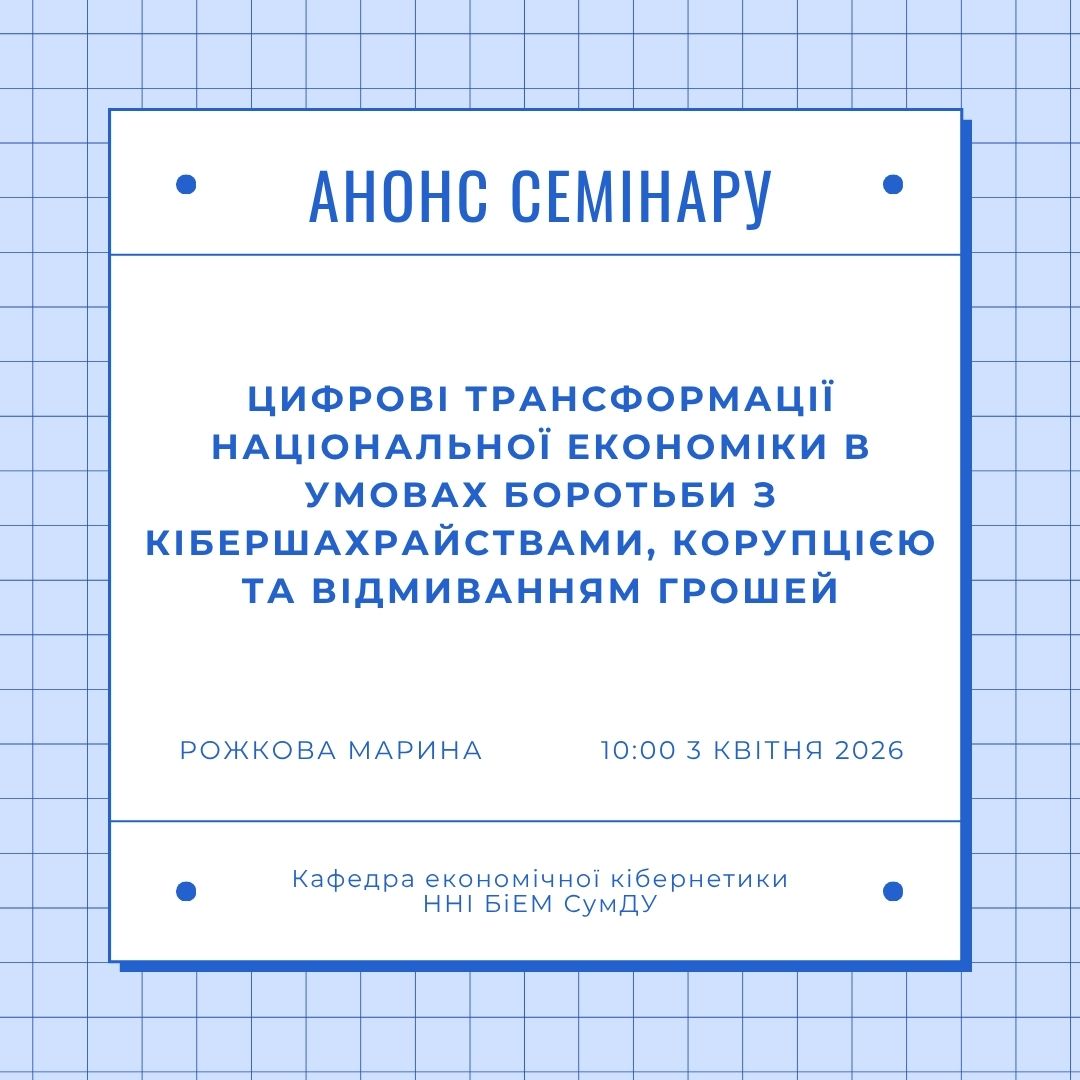 The Department of Economic Cybernetics invites you to join a scientific seminar dedicated to the current challenges of the digital economy.