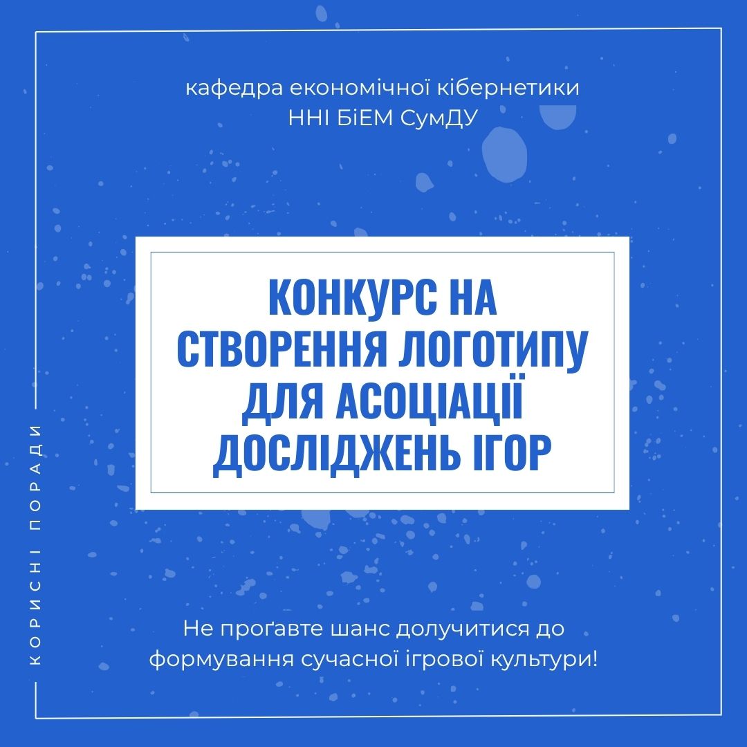 🎨 The world of games is not only entertainment, but also a powerful object of scientific research, analytics and modeling. The Ukrainian Association of Game Research and Game Education announces an open competition for the creation of its official logo, and this is a great chance for creative students of our department to show themselves!