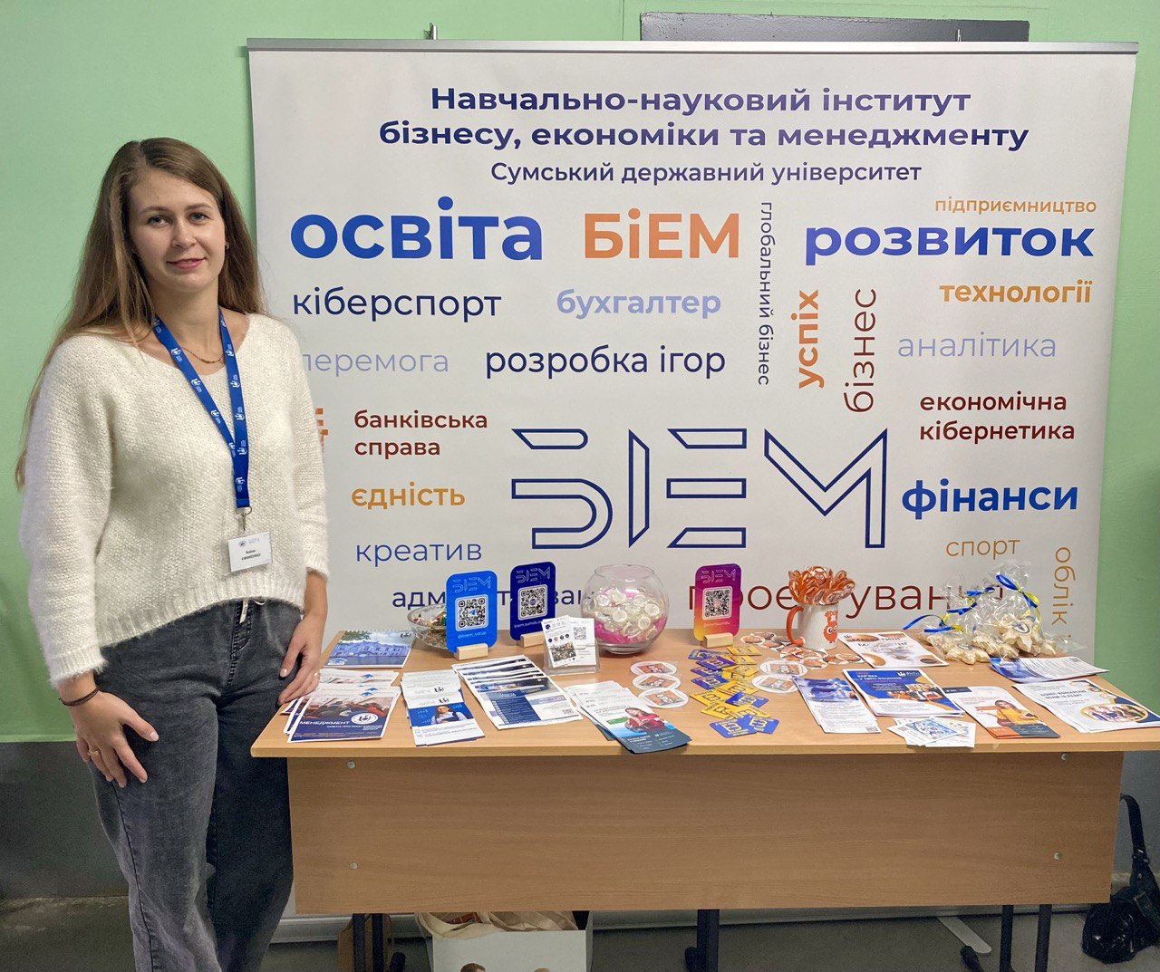 👩🏫 The Department of Economic Cybernetics was represented by Alina Yefimenko, assistant and deputy head of career guidance, and Maria Dudka, a student, who told participants about the specifics of the programme, employment prospects and its unique advantages.